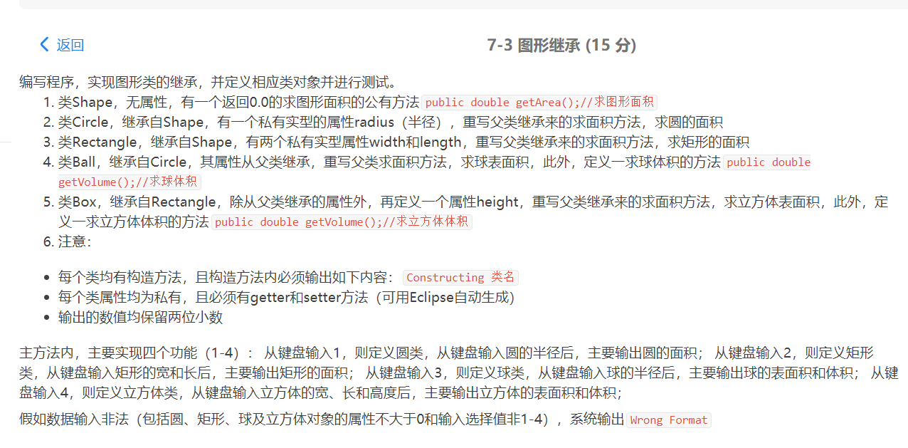 1.这道题考察我们的就是类的多态问题,题目只是告诉们要输出面积,但是没有给我们其中详细对象,所以我们要定义抽象类shape ,其中有abstra方法一个是Boolean类型的validate()还有一个double类型的getArea(),由于我们不知道接下来下面中的方法怎么写,所以在这里是不能直接定义返回值。