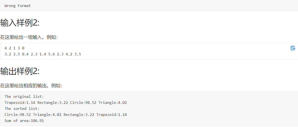 1.关于这次作业,大体意思不太难理解,从输入的数判断输入的形状并且根据形状不同用不同的公式以及数据类型进行算面积,排序,求和,由于我们输入的卡片不是确定的个数,所以我们所利用的数据储存方式为动态数据储存。但是本题要求定义一个dealcardlist类,根据属性的不同去进行分类储存,但是在一开始的时候,我没搞清list与cardlist,list存的应该是输入的数,然后cardlist为存的为一个card,其中的属性为shape,搞清楚数据储存,就可以进行下列各个操作。