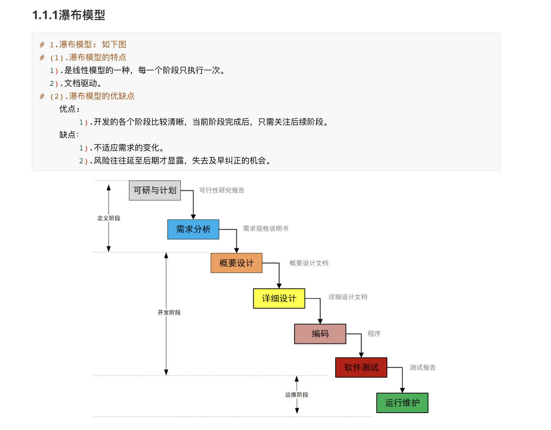 1.开发的各个阶段比较清晰,当前阶段完成后,只需关注后续阶段
