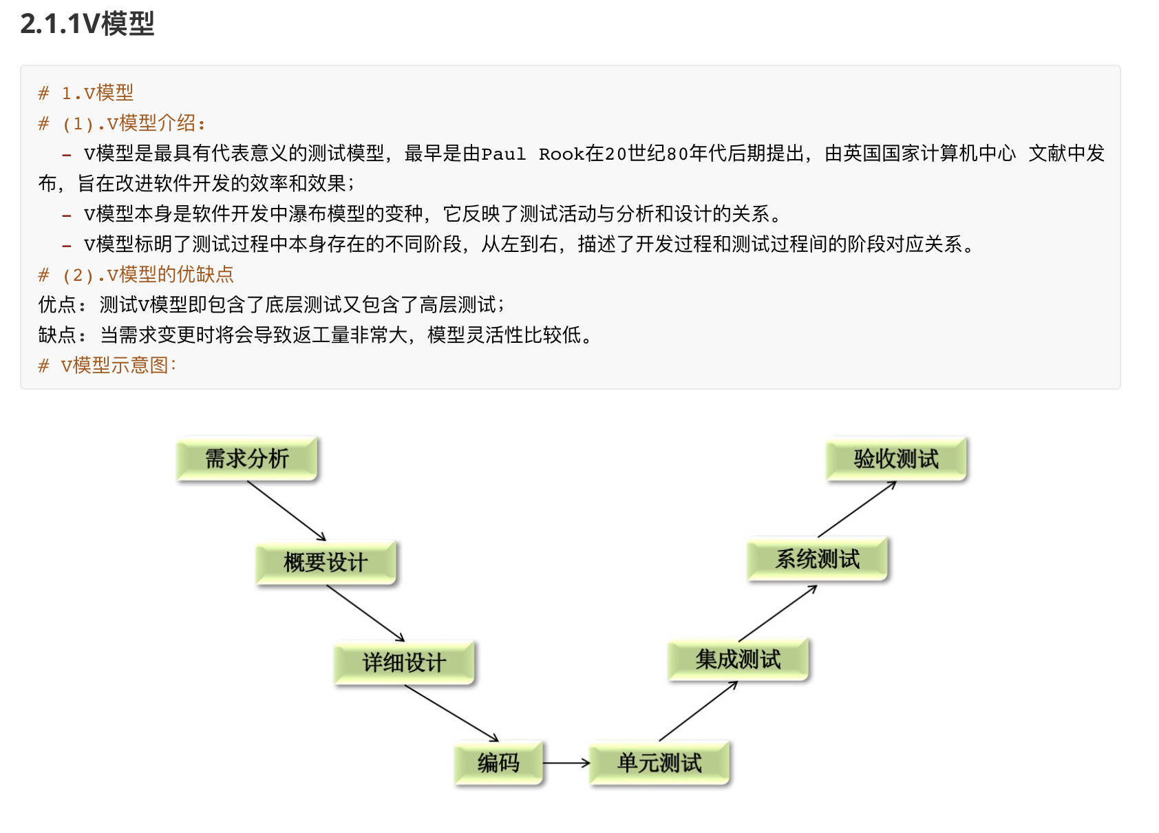 v模型是最具代表意义的测试模型,最早由Paul Rook在20世纪80年代后期提出,由英国国家计算机中心 文献中发布,皆在改进软件开发的效率和效果