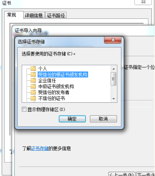 将所有的证书都放入下列存储—受信任的根证书颁发机构—下一步—完成