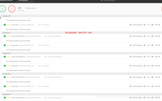6.选择测试集,输入要发送post请求的数量(参数化文件的),选择参数化文件,点击run开始批量执行