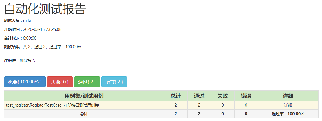 运行完毕,你会发现你的项目目录下已经生成了一个report.html文件,在浏览器中打开,就可以查看测试报告了。