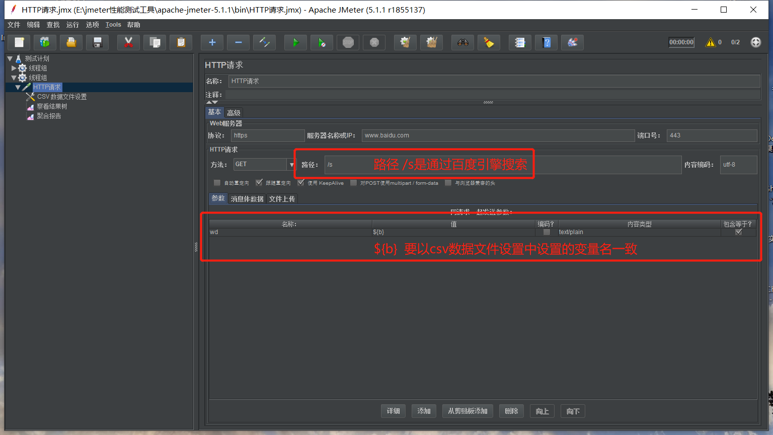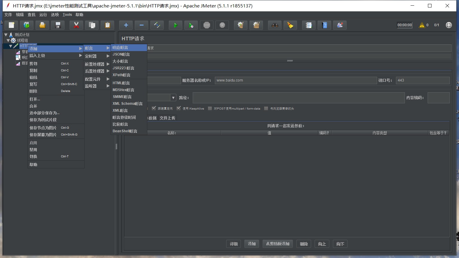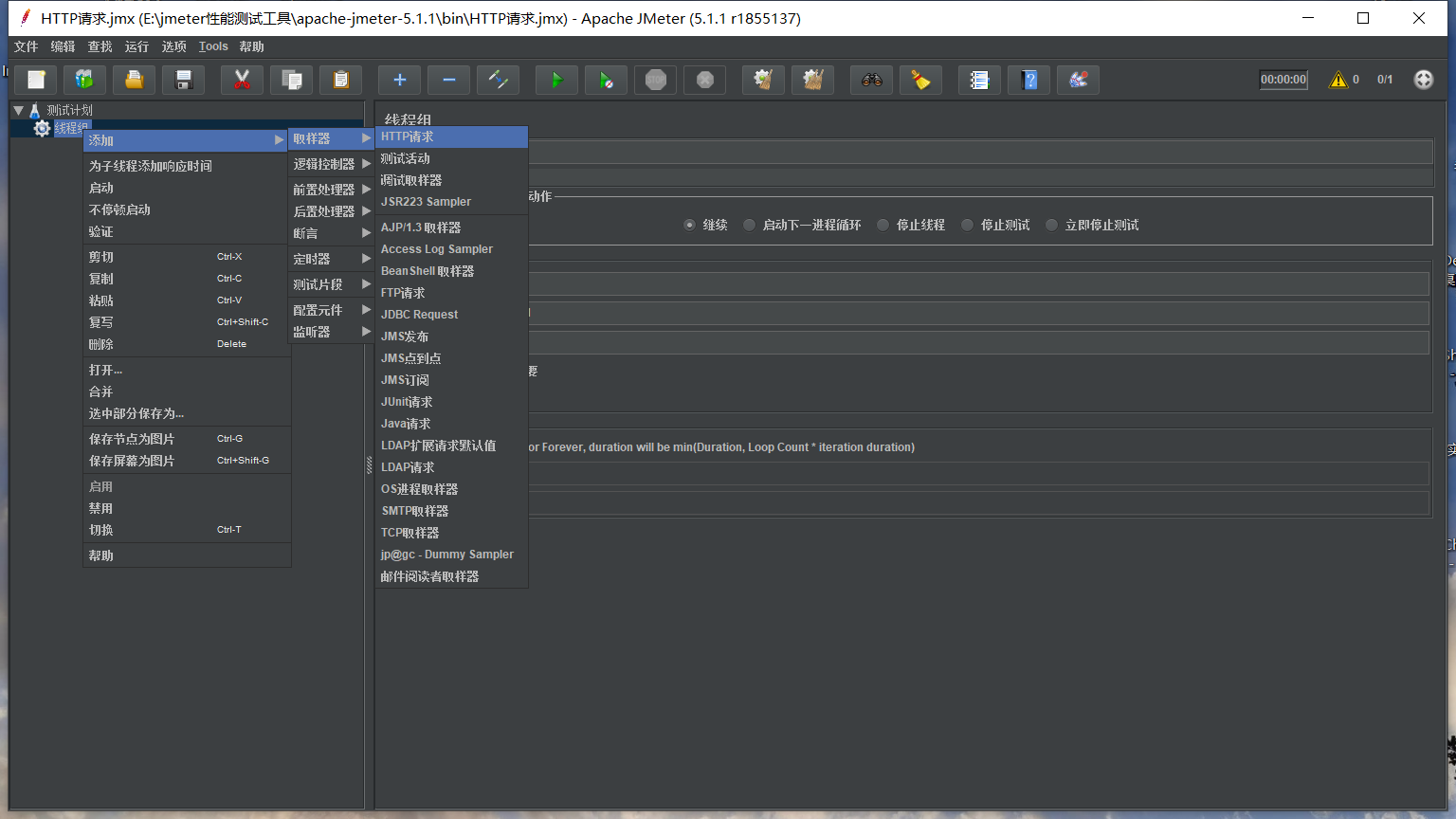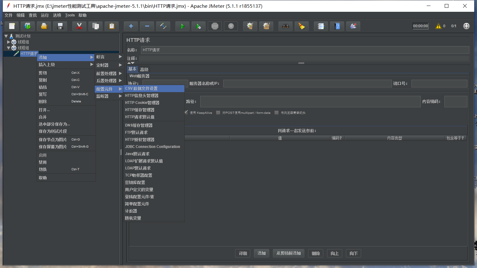 在线程组里添加取样器里的HTTP请求
