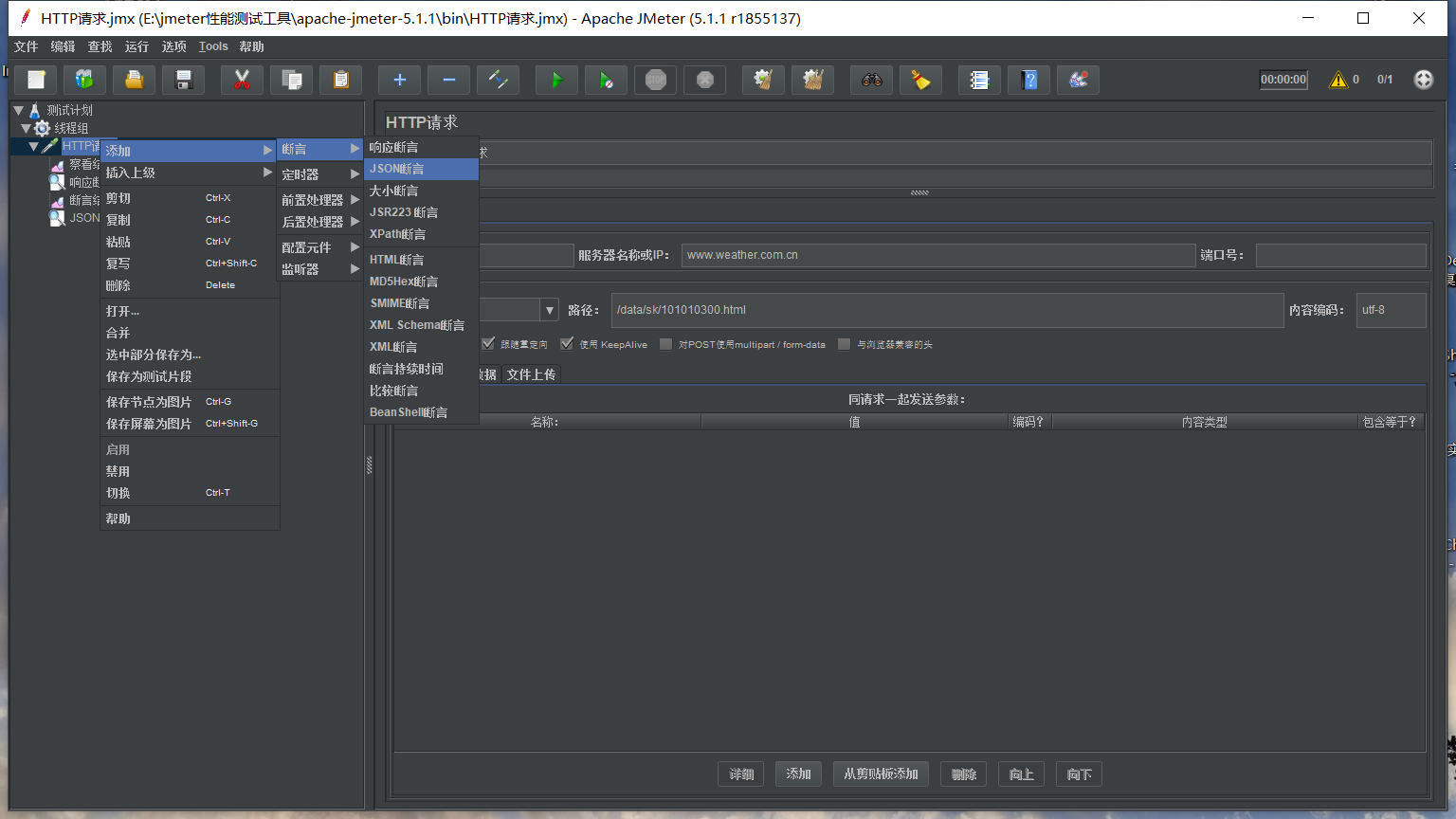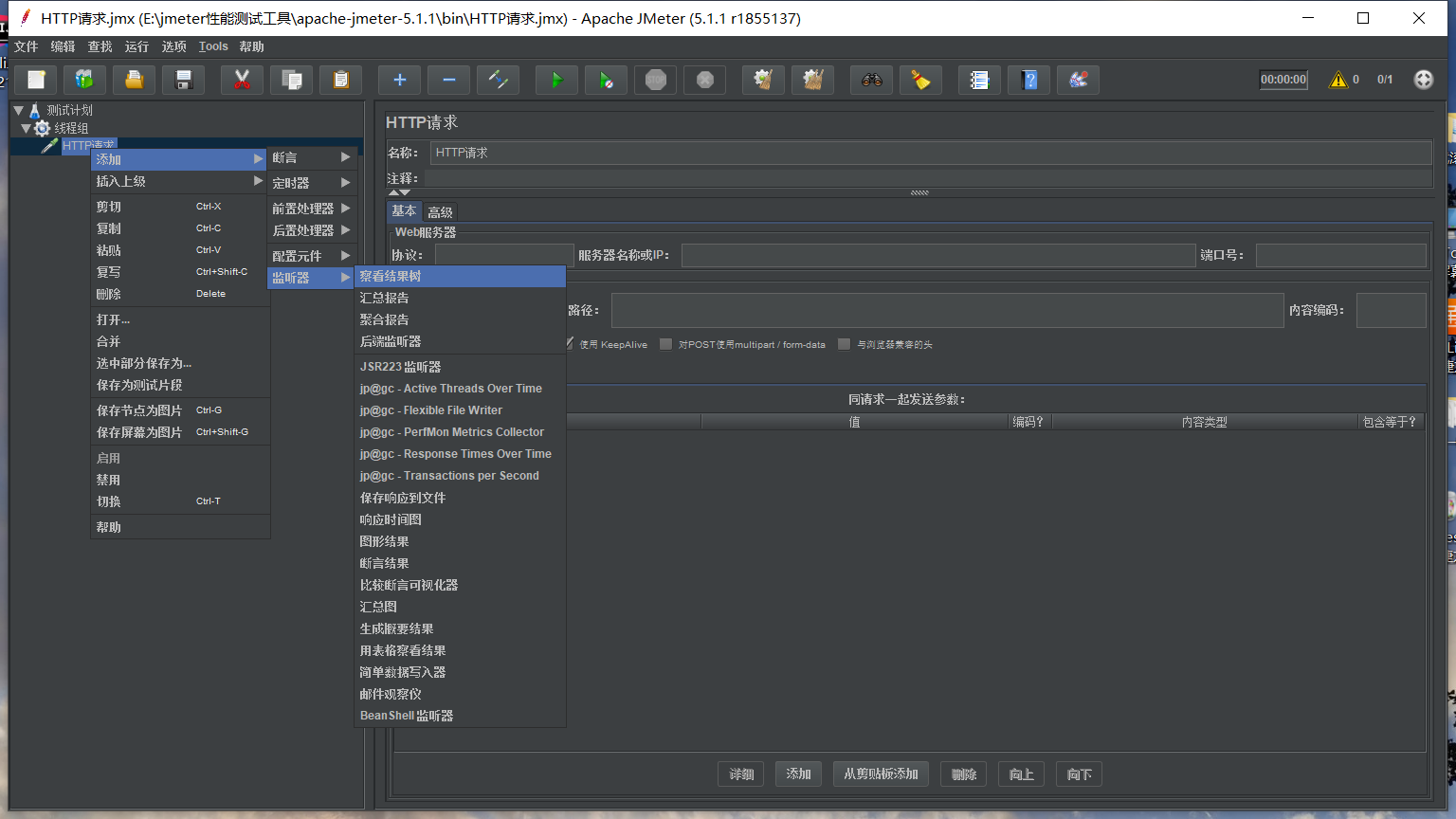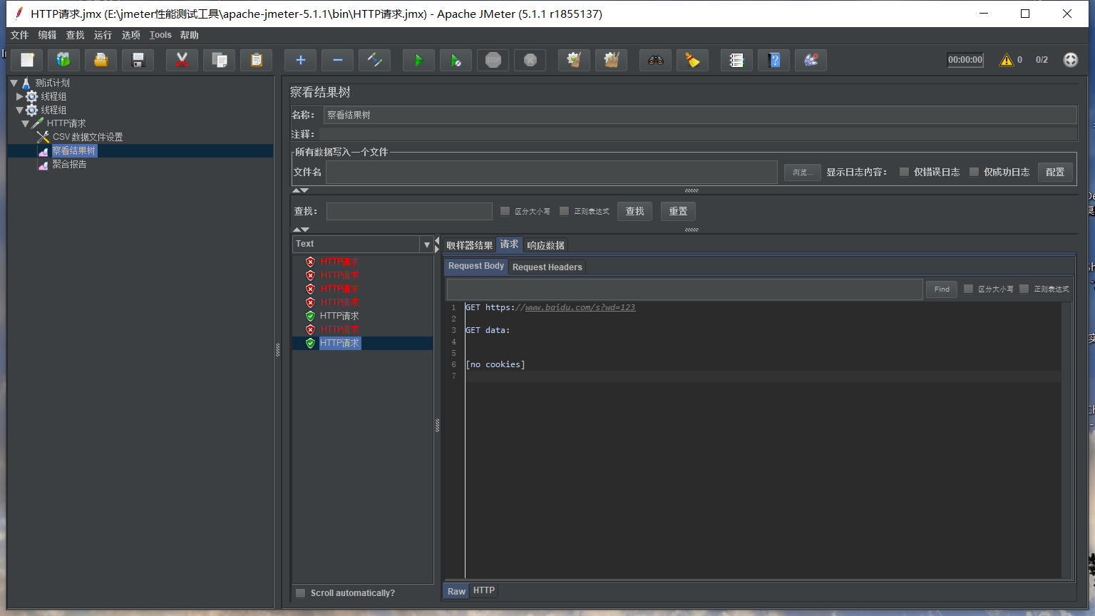 在HTTP请求里添加监听器里的察看结果树(查看请求结果)