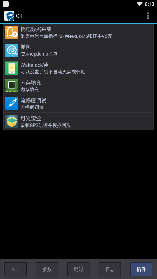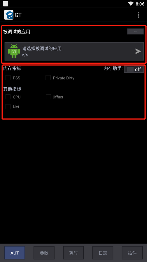 打开GT⼯具,在AUT界⾯选择被测试的app以及对应的性能指标