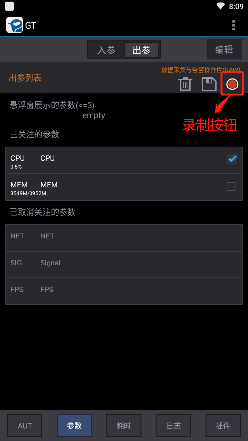 进⼊到参数界⾯,编辑参数,勾选对应参数,并点击录制按钮