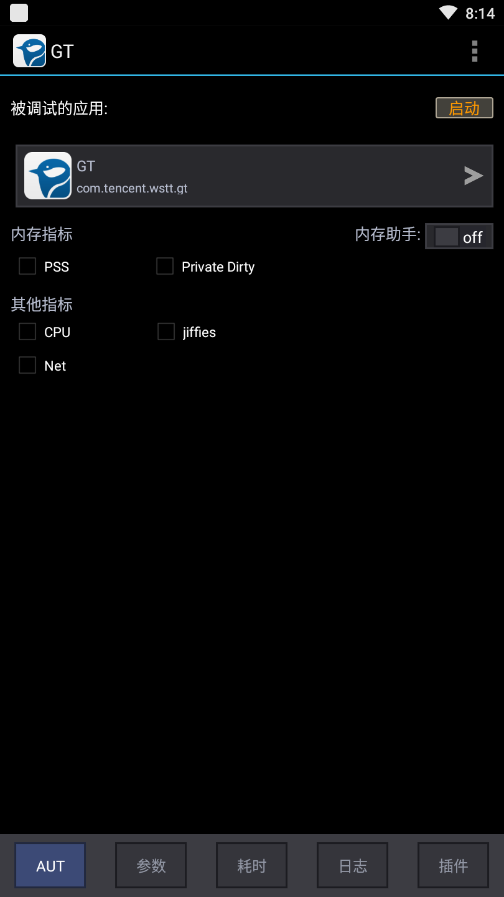 打开GT⼯具,选择对应的被测app, 勾选内存指标(PSS和private dirty)