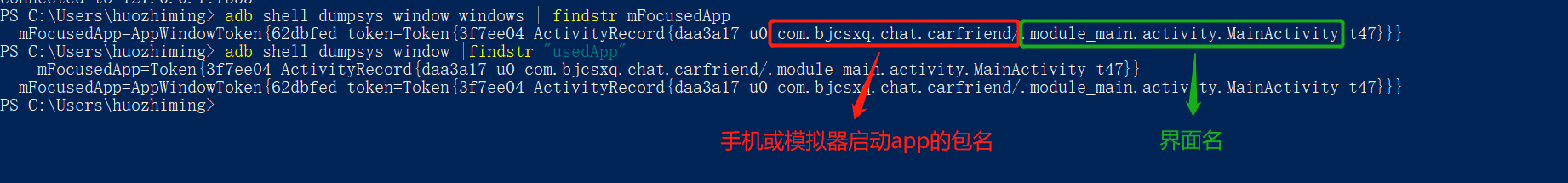 windows命令⼆: adb shell dumpsys window |fifindstr "usedApp"
