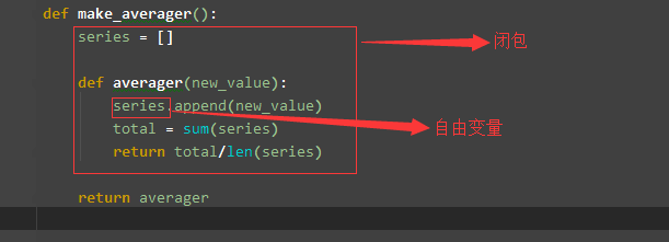 averager的闭包延伸到哪个函数的作用域之外,包含自由变量series的保定。