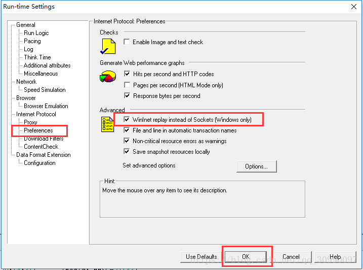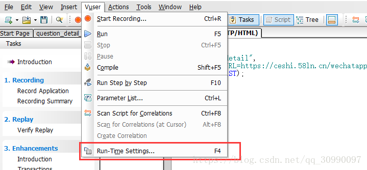 4.解决错误问题,在Vuser--Run-Time Settings中进行一个设置。找到preferences--advanced,将第一个勾选上,点击ok。