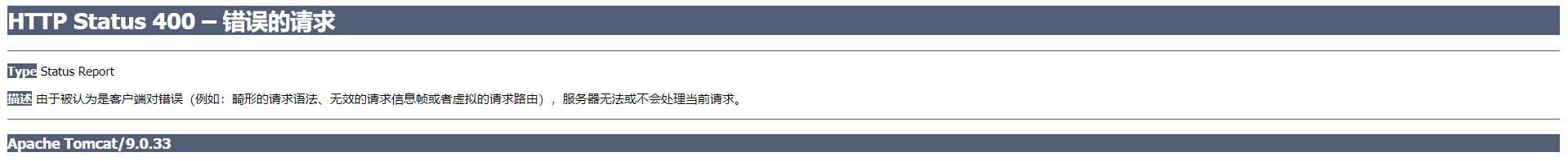 服务器请求400(由于被认为是客户端对错误(例如:畸形的请求语法、无效的请求信息帧或者虚拟的请求路由),服务器无法或不会处理当前请求)的原因