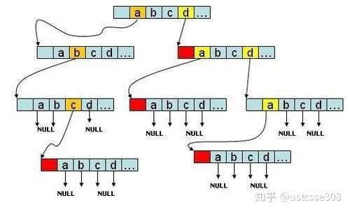 Trie的核心思想是空间换时间。利用字符串的公共前缀来降低查询时间的开销以达到提高效率的目的。它有3个基本性质: