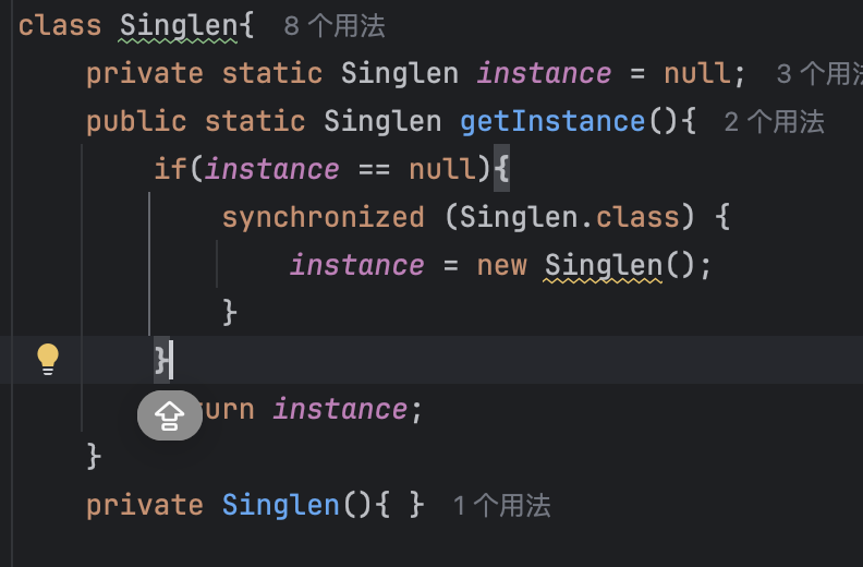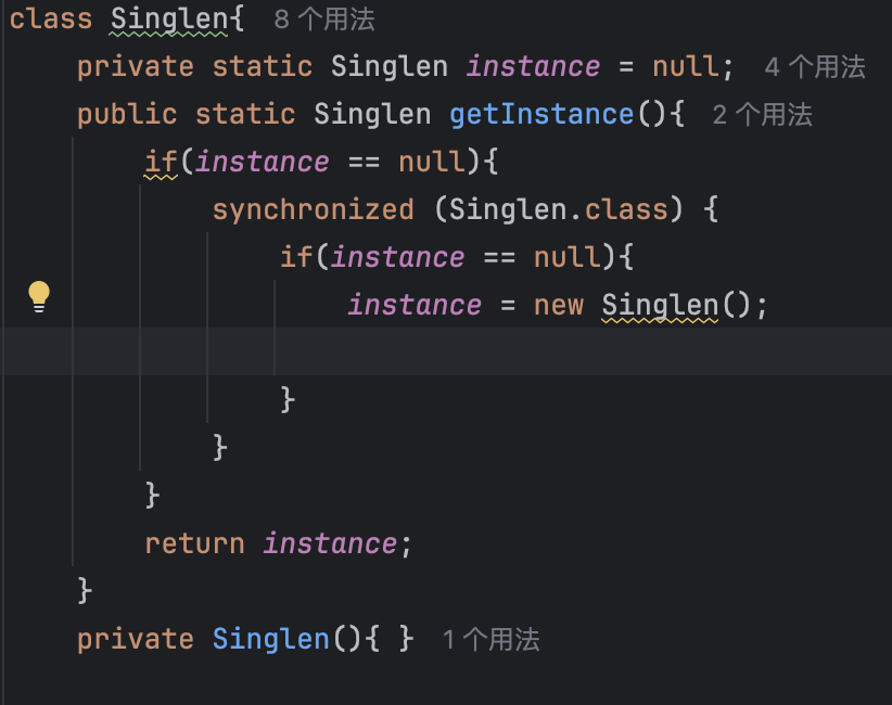 因为线程调度执行是随机的,在多线程代码中可能会有多个线程同时进行if判断,这就导致会创建出多个实例