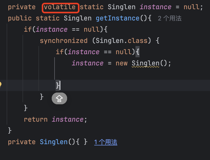 当首次调用getinstance时,线程A执行到了instance = new Singlen()时,jvm进行了重排序,先进行了赋值,未进行初始化,此时cpu进行了资源调度线程B拿到的成员变量处于半初始化状态,导致成员变量的值为默认值,而线程B这时又继续执行判断后直接返回了instance ,当我们继续使用instance里面的属性或者方法,就有可能会引起代码的逻辑性问题,
