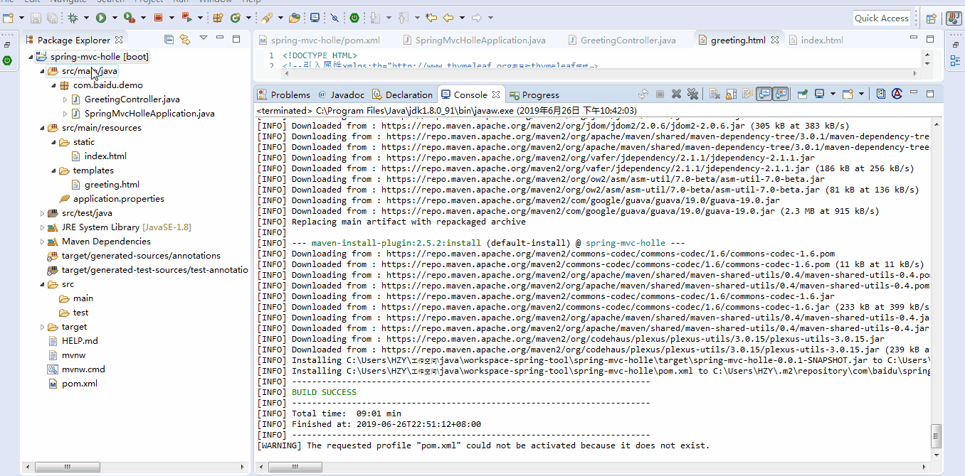 第五步:将源码中的static/index.html和templates/greeting.html复制到工程中的main/resources/static/和main/resources/templates/中