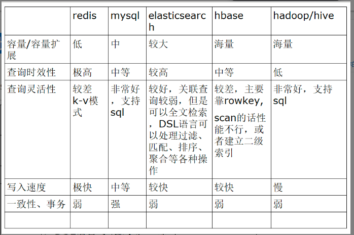 另附5种常用数据库对比 & ES数据库的优势所在: