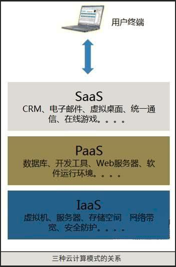 PaaS基于IaaS实现,SaaS的服务层次又在PaaS之上,三者分别面对不同的需求