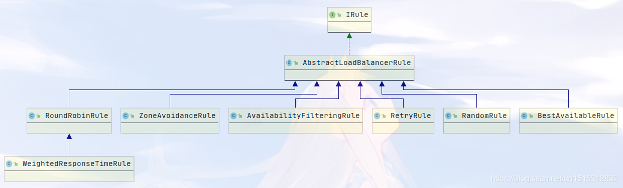 IRule :选择一个最终的服务地址作为LB结果。选择策略有轮询、根据响应时间加权、断路器(当Hystrix可用时)等
