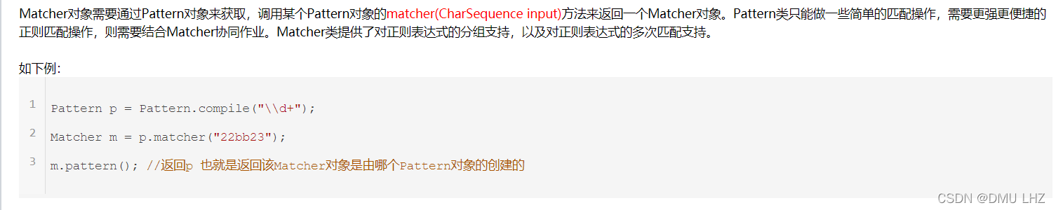 即获取matcher对象,便于和Matcher类协同作业