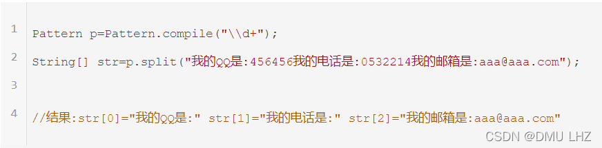 Pattern有一个split(CharSequence input)方法,用于分隔字符串,其中Pattern对应的正则表达式匹配的字符串作为分隔符,并返回一个String[]。