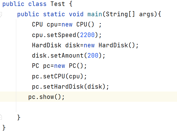 (3)main方法中创建一个PC对象pc。
