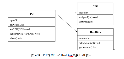 · PC类与CPU和HardDisk类关联的UML图(见图4.34)