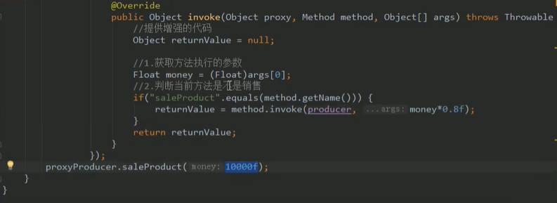 Class[]:字节码数组 它是用于让代理对象和被代理对象有相同的方法(只要两者都实现了同一个接口, 那么两者的方法必然相同,所以我们传接口的字节码文件即可)。固定写法:代理对象.getClass().getInterfaces()