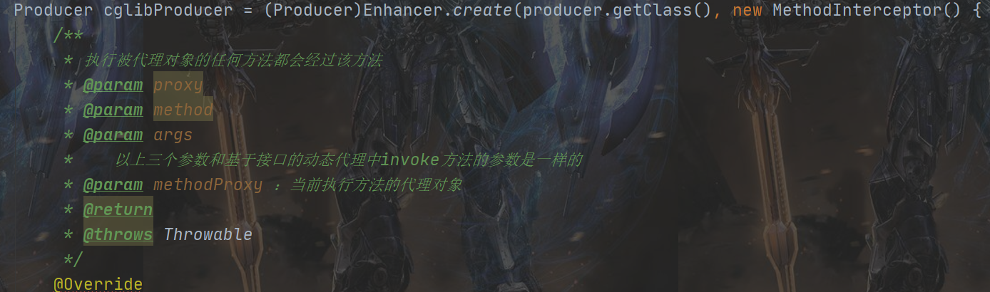 - Callback:处理器 用于提供增强的代码,它是让我们写如何代理,我们一般都是写一个该接口的实 现类。通常情况下都是匿名内部类,但不是必须的,此接口的实现类都是谁用谁写。一般写的都是该接口的子接口实现类:MethodInterceptor