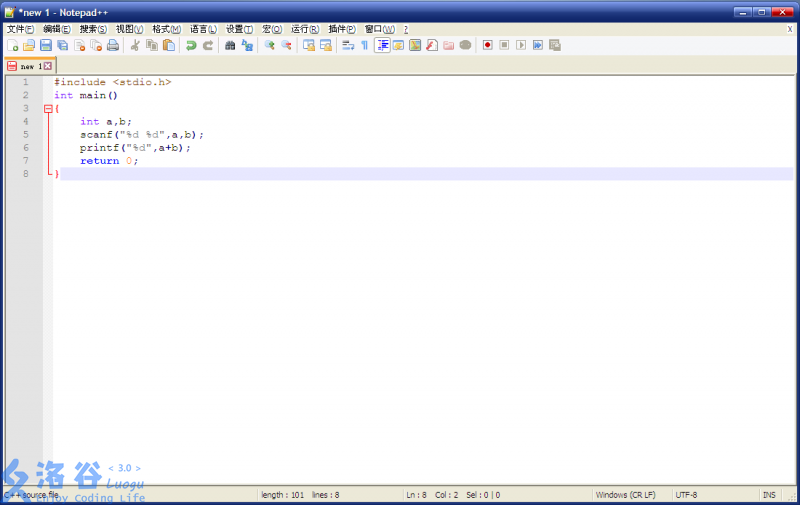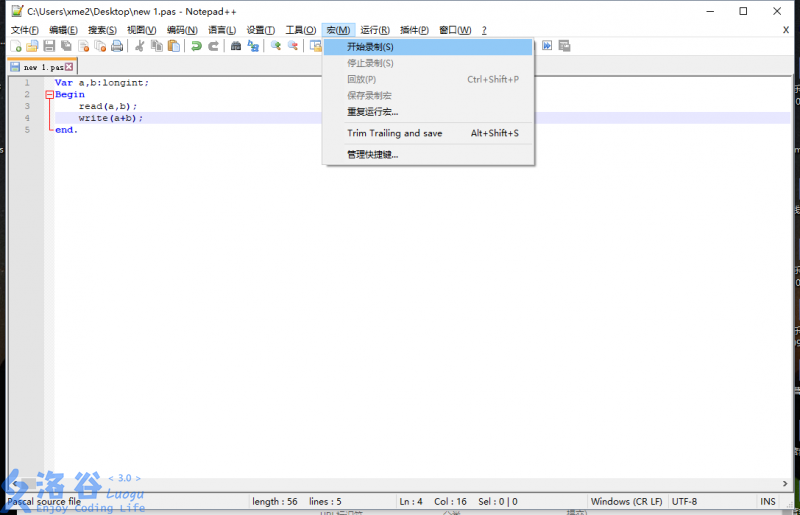 用npp(Notepad++)编一个没脑程序: