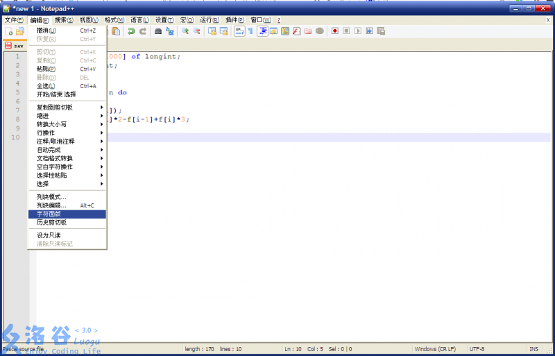更多快捷键见npp的帮助