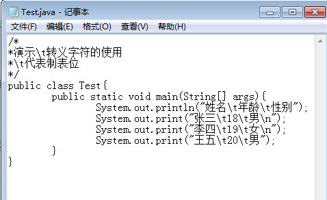 System.out.println("姓名\t年龄\t性别");