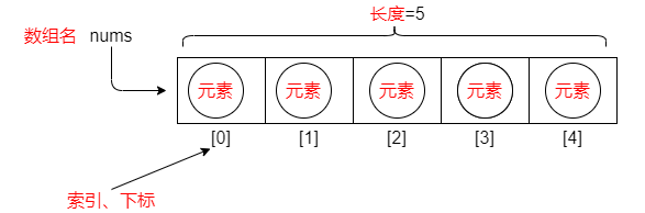 每一个存储到数组的元素,都会自动的拥有一个编号,从0开始,这个自动编号称为数组索引(index),可以通过数组的索引访问到数组中的元素。