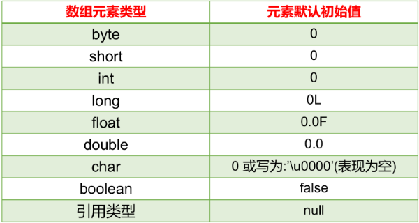 上图就是数组的默认值详细介绍,除了数值型数据几乎都是标记为0和布尔的默认false外,所有引用类型在数组中的默认值都是null