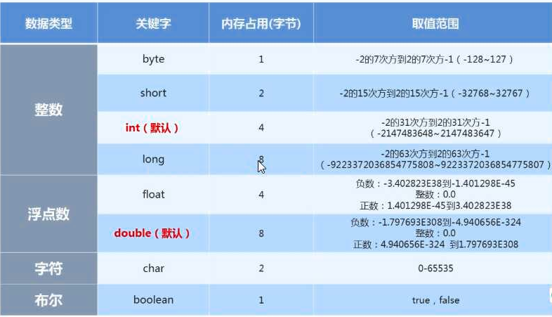 //char自动升级为int int i = 'A'; //int自动升级为double double d = 10; - 当存储范围小的数据类型与存储范围大的数据类型一起混合运算时,会按照其中最大的类型运算