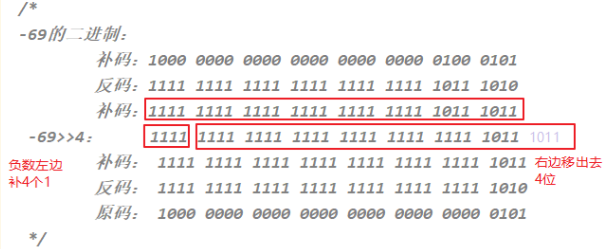 -69>>4 类似于 -69/2的4次 = -69/16 = -5![]()