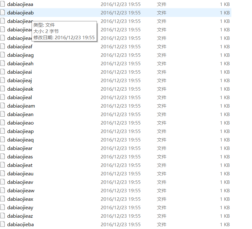 其中全是单个字符与字母,观察题目发现要用到要使用文件命令将其合并为一个文件,进入文件操作输入命令