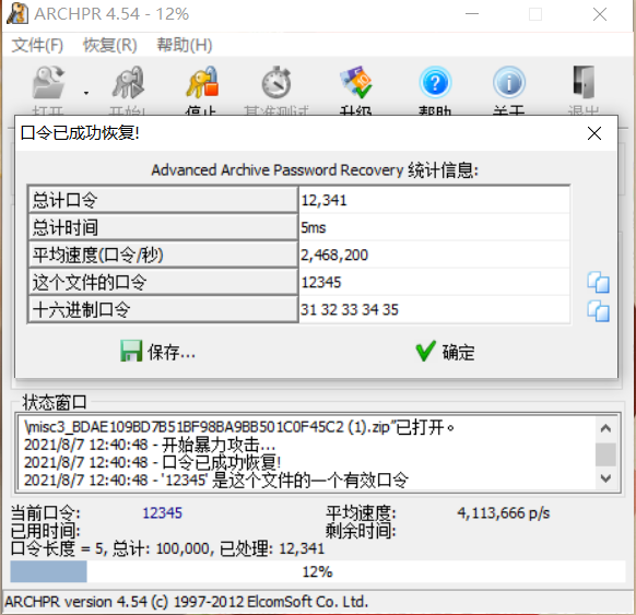 打开附件发现一个压缩包,压缩时发现有密码,暴力破解发现密码是12345
