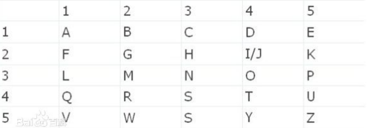 观察题目发现关键词“波利比奥斯棋盘”网上找到该加密方法