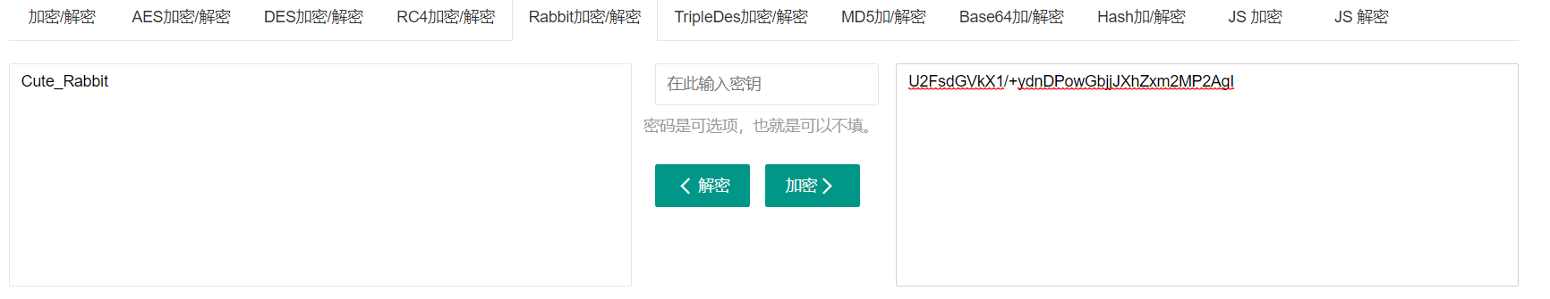 观察文本得不到什么有用的信息,题目名为rabbit,网络搜索rabbit解密,果然存在解密工具,放入其中