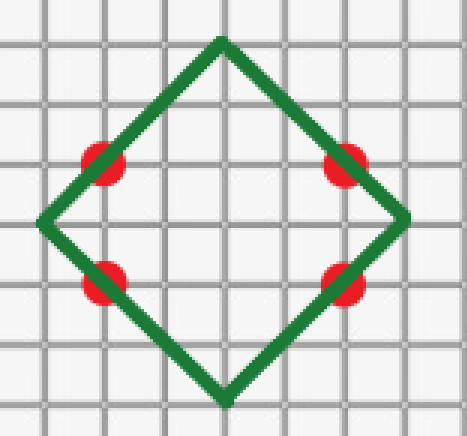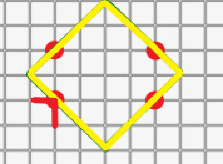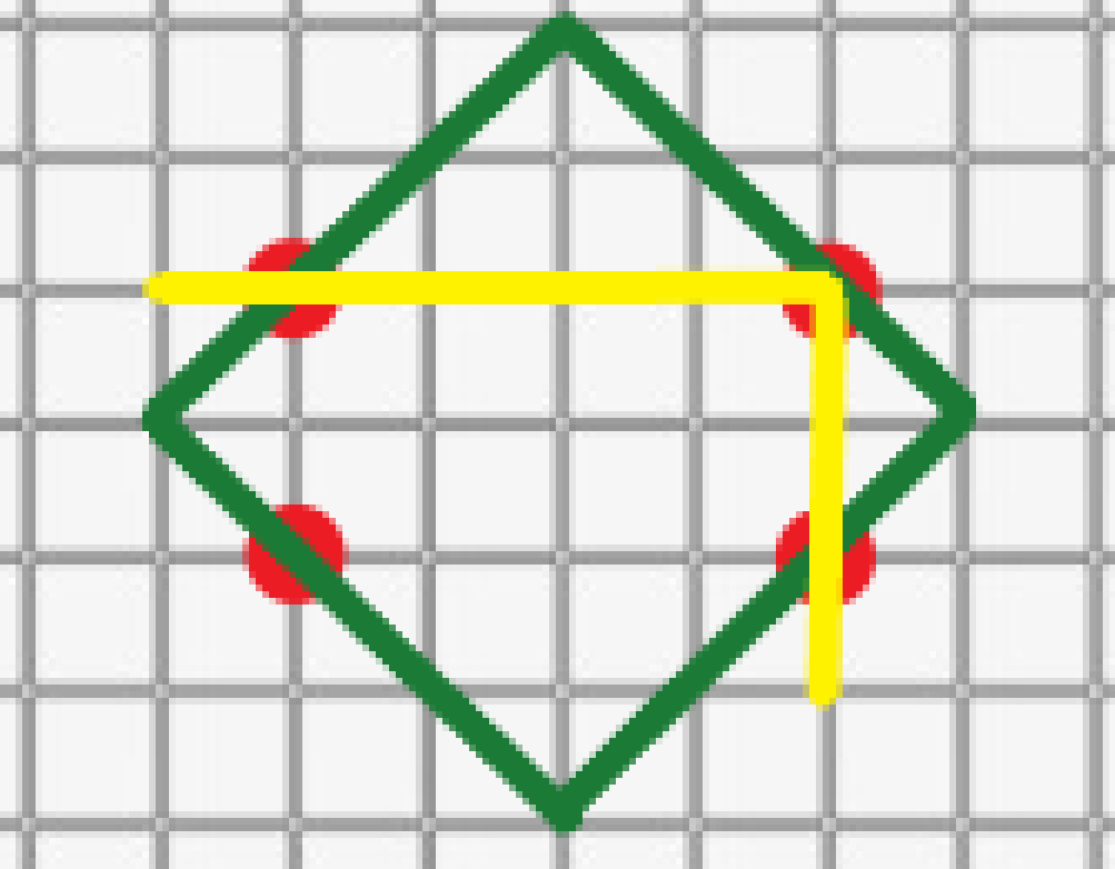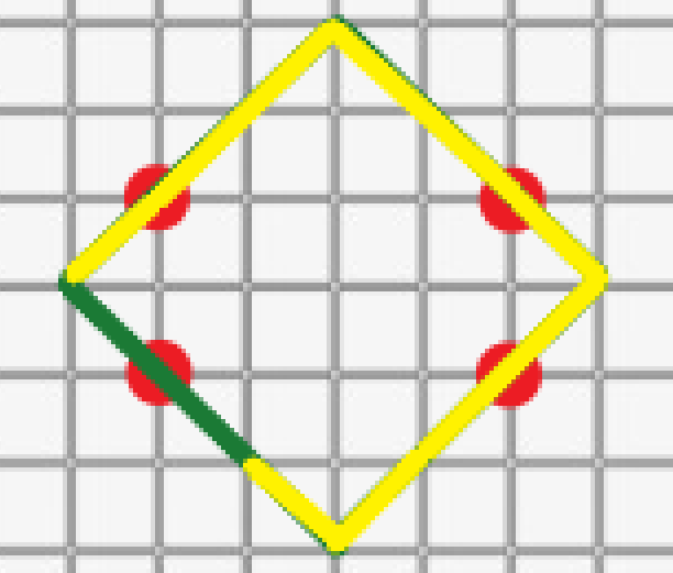 由此可发现走菱形是最优的,也就是只走与平面直角坐标系中平分一三象限的直线或平分二四象限的直线平行的线。