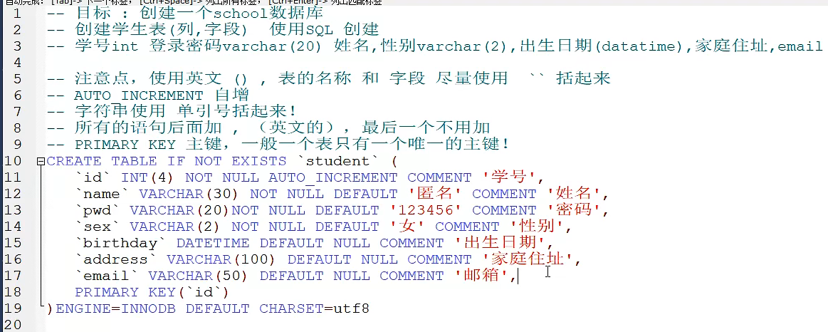 show create table student -- 查看student数据表的定义语句