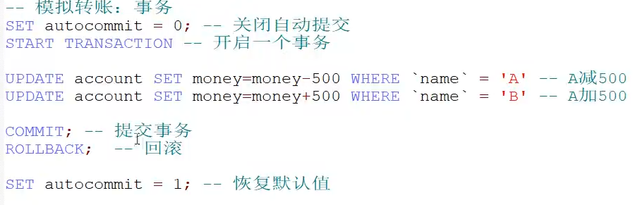 开启事务:start transaction