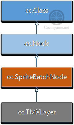TMXLayer是地图层类,它的类图如下图所示,TMXLayer也派生自Node类,也具有Node特点。同时TMXLayer也派生自SpriteBatchNode类,所有TMXLayer对象具有批量渲染的能力,瓦片地图层就是由大量重复的图片构成,它们需要渲染提高性能。