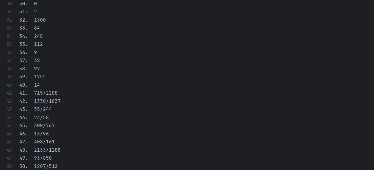 answer.append((count + 1) + ". " + intAnswer(operator, a, b) + "\n");