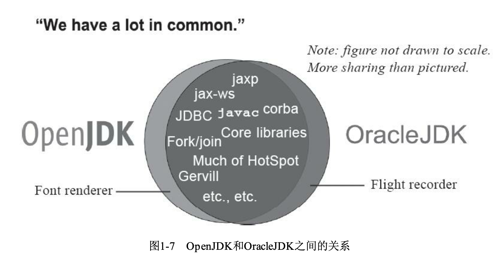 在JDK11之前,oracleJDK中还会存在一些openJDK中没有的、闭源的功能。但在JDK11中,我们可以认为openJDK和oracleJDK代码实质上已经完全一致的程度。