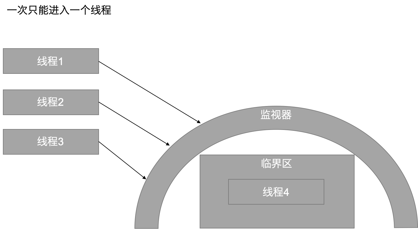 下图展示了监视器如何保护临界区代码不同时被多个线程访问,只有当线程4离开临界区后,线程1、2、3才有可能进入。