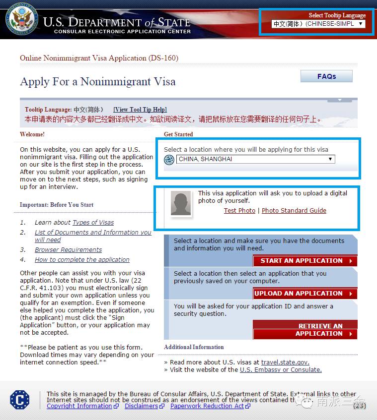 ①填写DS-160 https://ceac.state.gov/GenNIV/Default.aspx