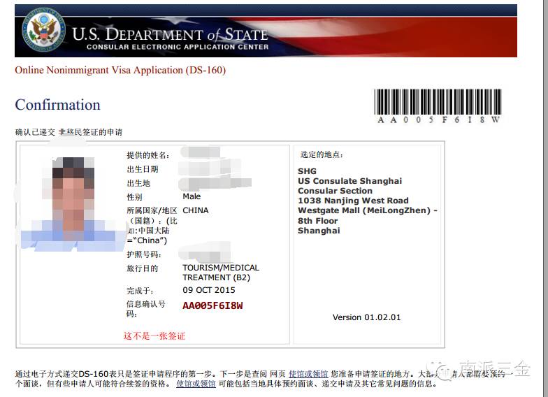 非移民签证电子申请表DS-160,需要DS-160表确认页上的条形码编号;