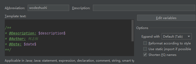 IDEA设置自定义模板
